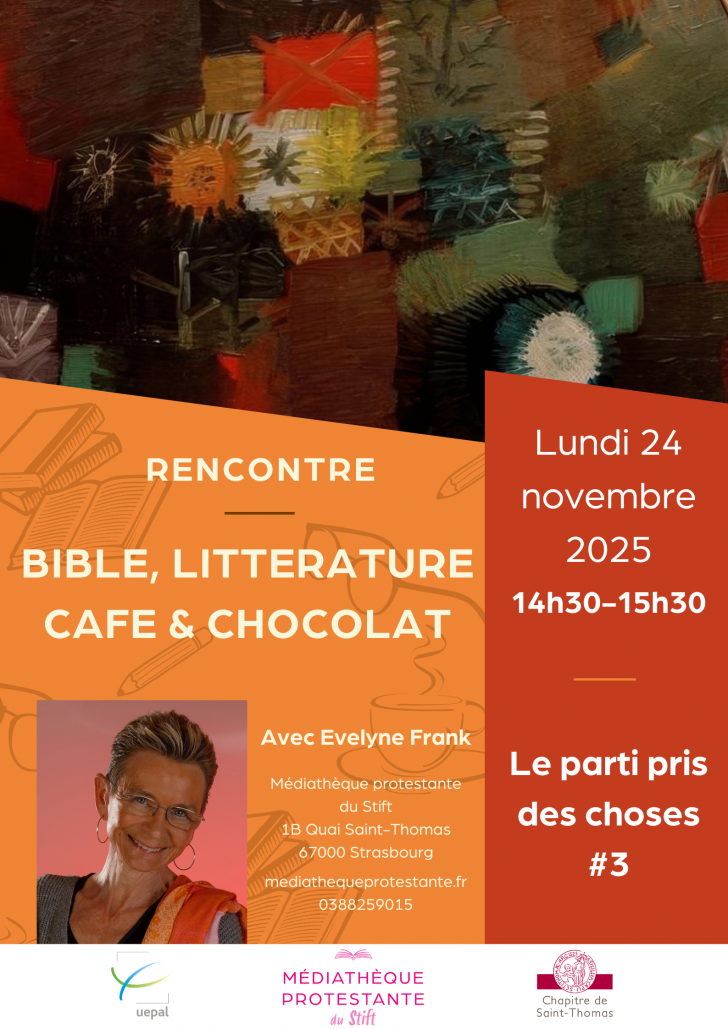 Lundi 24 novembre, 14h30 Bible, littérature, café et chocolat, avec Evelyne Frank : "Le parti pris des choses" 3