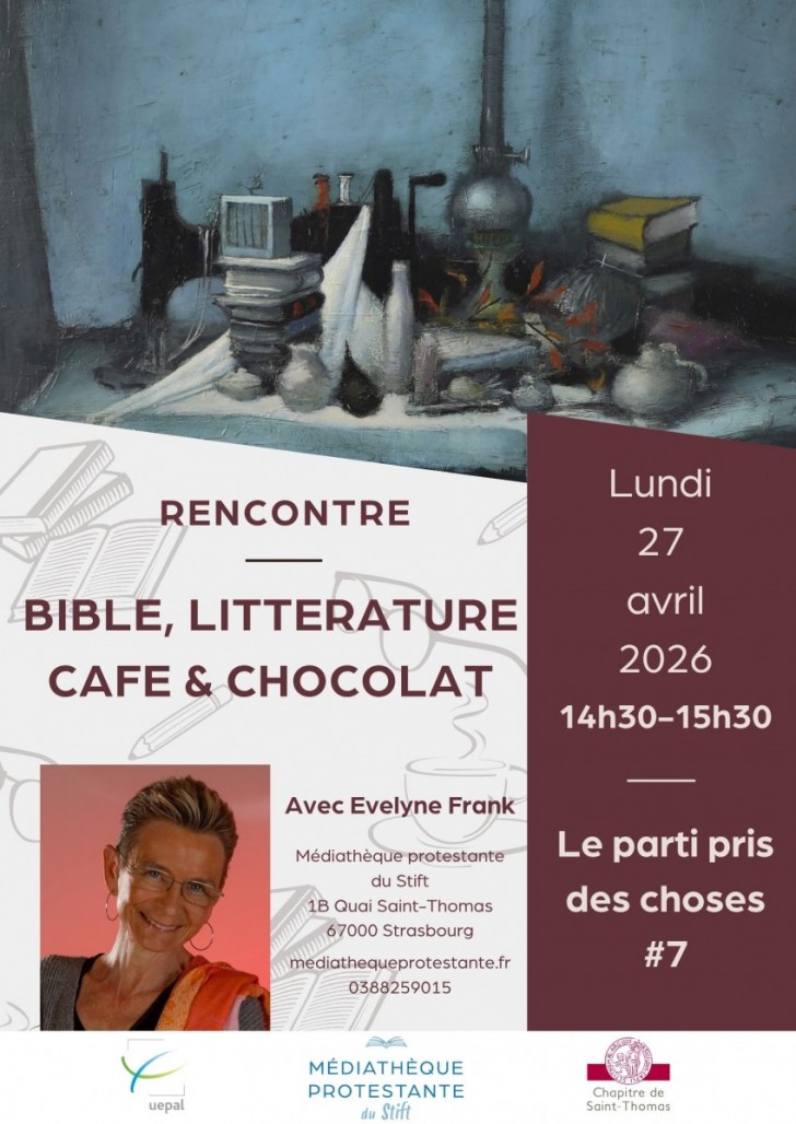 14h30 : Bible, littérature, café et chocolat « Le parti pris des choses » #5, avec Évelyne Frank