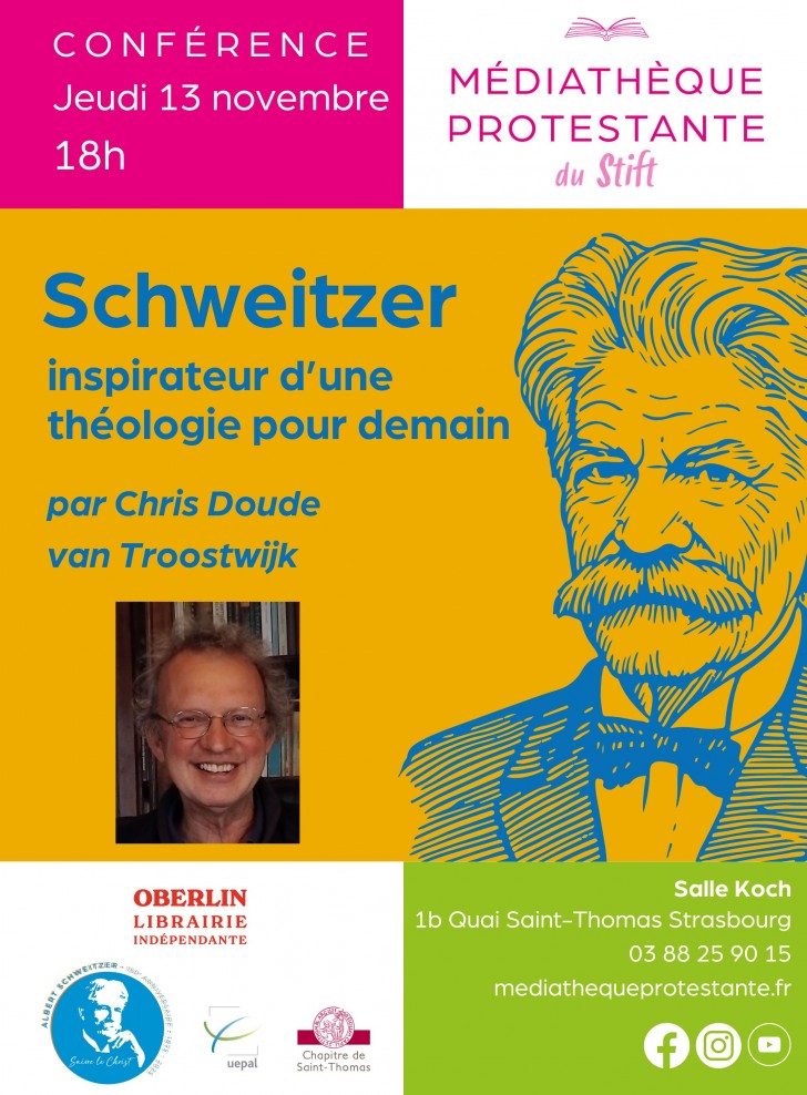 Jeudi 13 novembre, 18h. Cycle Schweitzer #9 : "Albert Schweitzer Schweitzer inventeur d’une théologie pour demain", par Chris Doude van Troostwijk