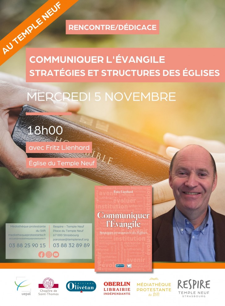 “Communiquer l'Evangile. Stratégies et structures des Eglises”, avec Fritz Lienhard (Olivétan), rencontre-dédicace au Temple neuf