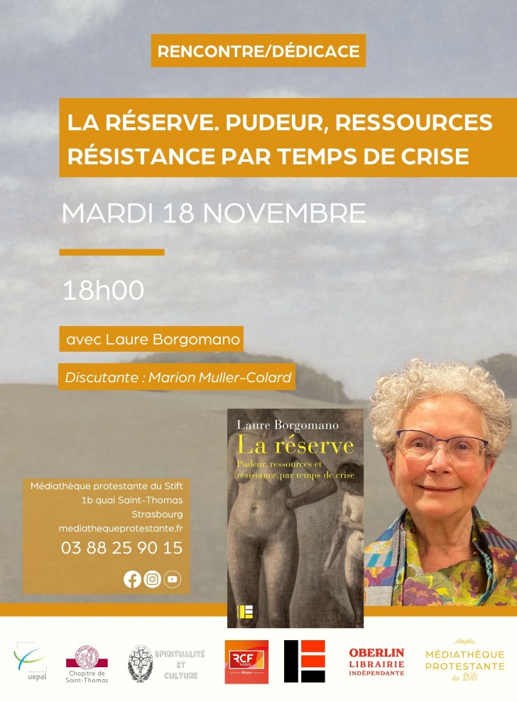 “La réserve”, avec Laure Borgomano, discutante Marion Muller-Colard, (Labor et Fides), en partenariat avec la Faculté de théologie protestante, l’Association Spiritualité et culture et RCF Alsace